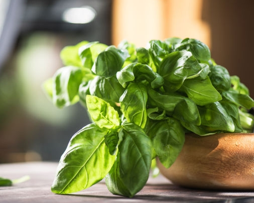 바질은 신맛과 특유의 강한 향기가 특징으로 , 바질은 두통을 완화해 주며 각종 비타민과 식이섬유, 철분, 엽산, 등이 풍부하게 함유되어 있어 건강에 매우 좋습니다. 말린 바질 잎 2g에는 비타민k가 일일 섭취 권장량의 43% 함유되어 있습니다.